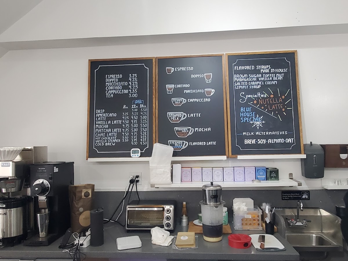 Blue House Café offers a diverse and appealing selection of drinks designed to cater to various tastes and preferences. Their flavored syrups include indulgent options like Madagascar Vanilla Bean, Salted Caramel Cream, and a simple Simple Syrup, perfect for adding a sweet touch to any beverage. The café also provides several milk alternatives to suit different dietary needs, including Breve, 2% Milk, Soy Milk, Almond Milk, and Oat Milk, ensuring that everyone can enjoy their drinks just the way they like them. For tea lovers, Blue House Café offers a wonderful selection, including Earl Grey, Green Tea, Jasmine, Lemon Ginger, and Chamomile, making it an ideal spot for both coffee and tea enthusiasts. As for coffee lovers, the café serves up rich options such as Espresso, Doppio, Macchiato, Cortado, and Cappuccino, guaranteeing a satisfying caffeine fix. Whether you're craving a sweet, flavorful drink or a robust cup of coffee, Blue House Café's menu provides an excellent range of options that cater to various tastes.